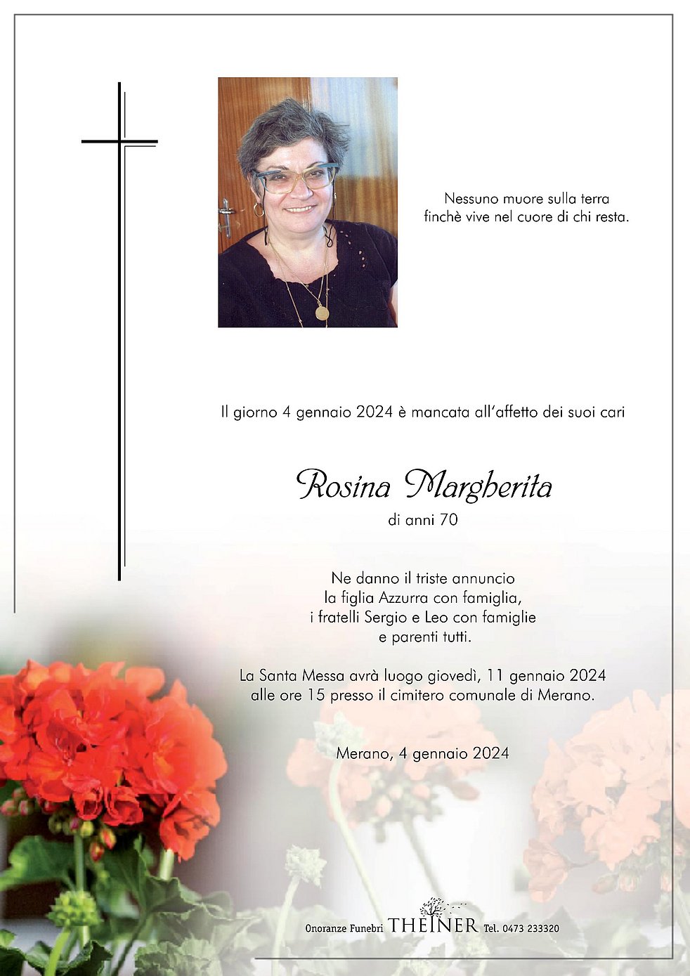 Il giorno 4 gennaio 2024 è mancata all‘affetto dei suoi cari