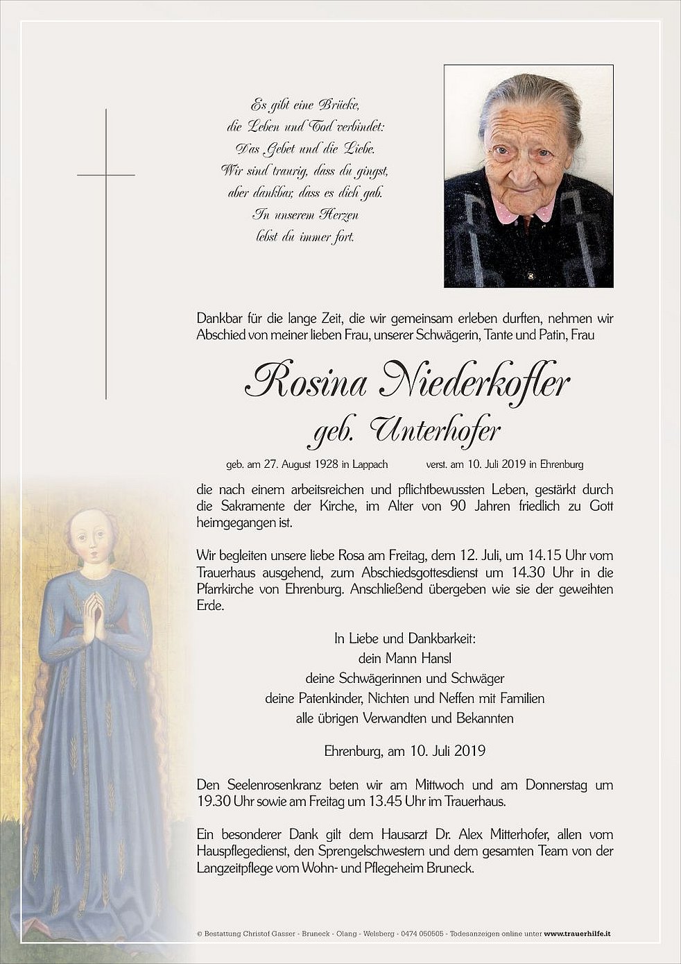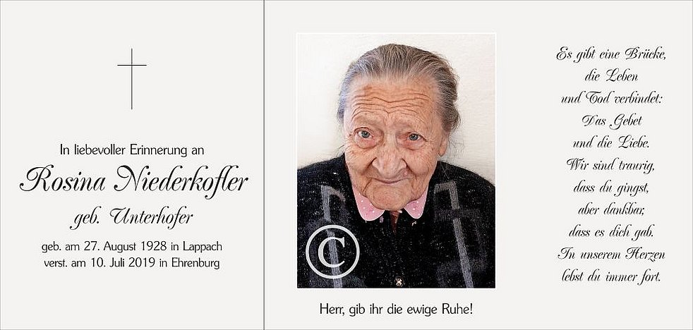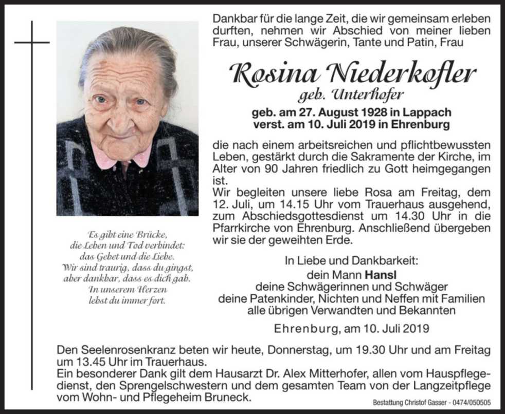 geb. am 27. August 1928 in Lappach verst. am 10. Juli 2019 in Ehrenburg