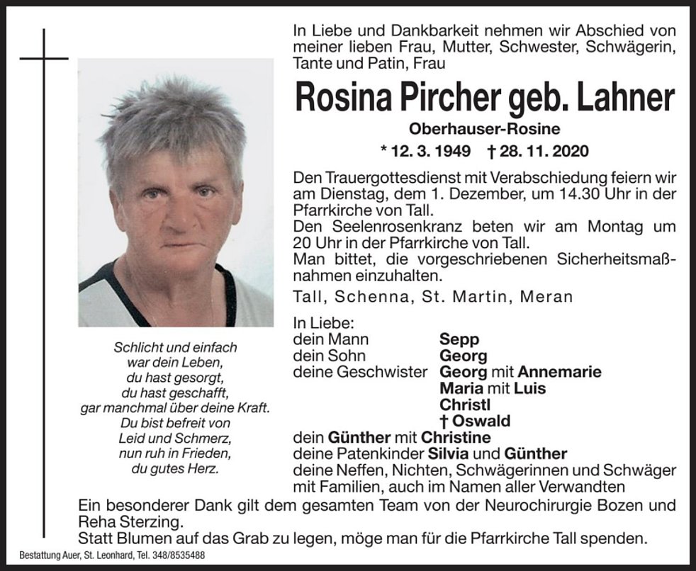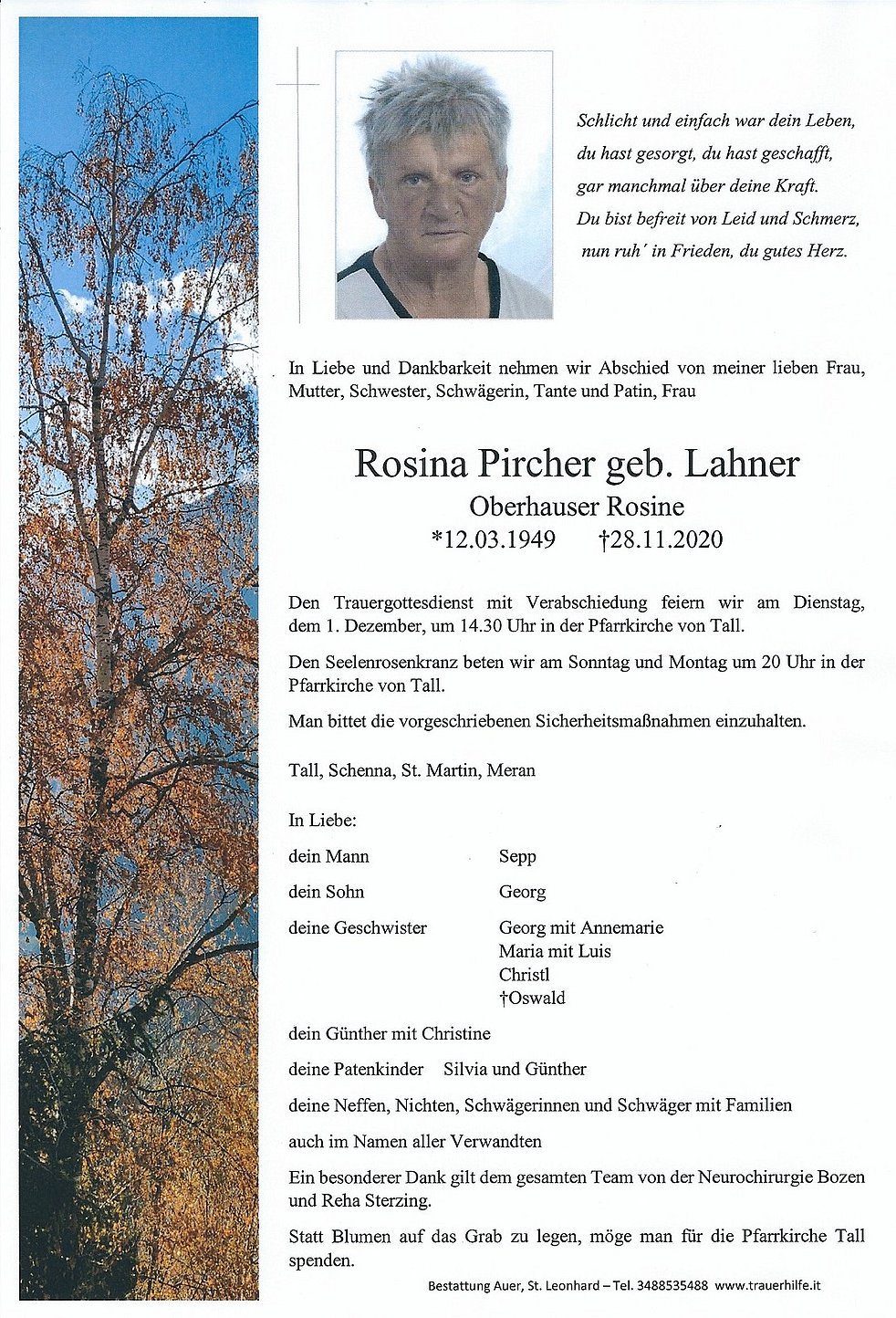 Den Trauergottesdienst mit Verabschiedung feiern wir am Dienstag, dem 1. Dezember, um 14.30 Uhr in der Pfarrkirche von Tall.
