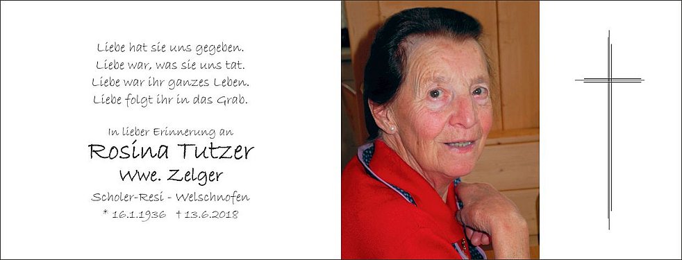 Statt Blumen auf das Grab zu legen, möge man für die Pfarrkirche Welschnofen spenden.