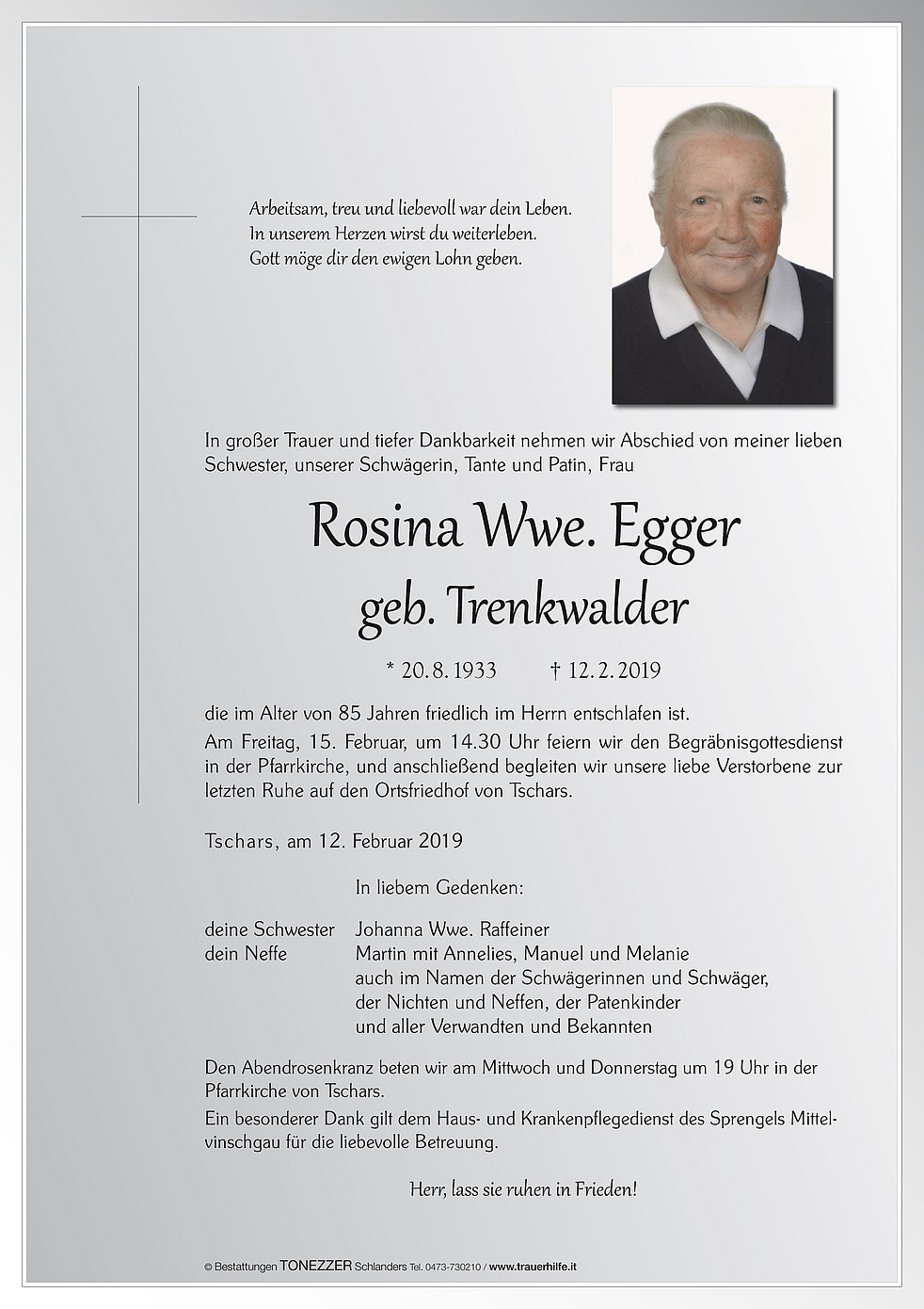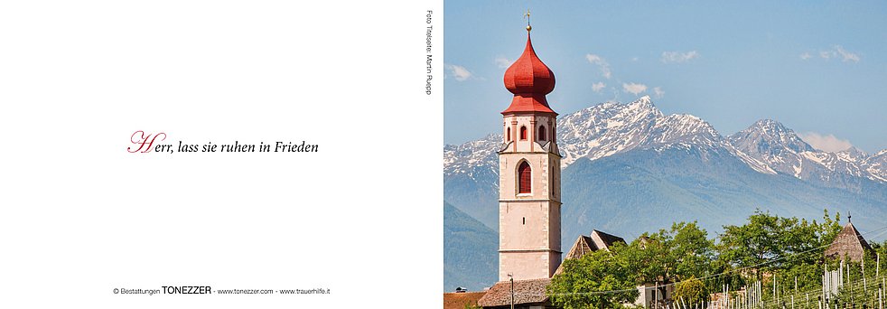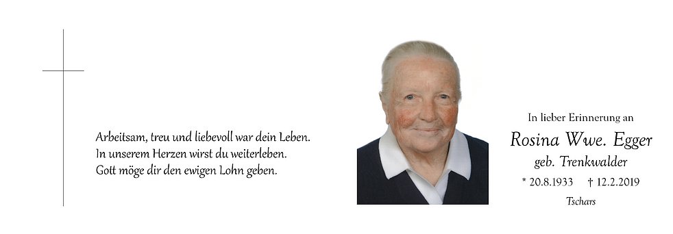 Am Freitag, 15. Februar, um 14.30 Uhr feiern wir den Begräbnisgottesdienst in der Pfarrkirche, und anschließend begleiten wir unsere liebe Verstorbene zur letzten Ruhe auf den Ortsfriedhof von Tschars.
