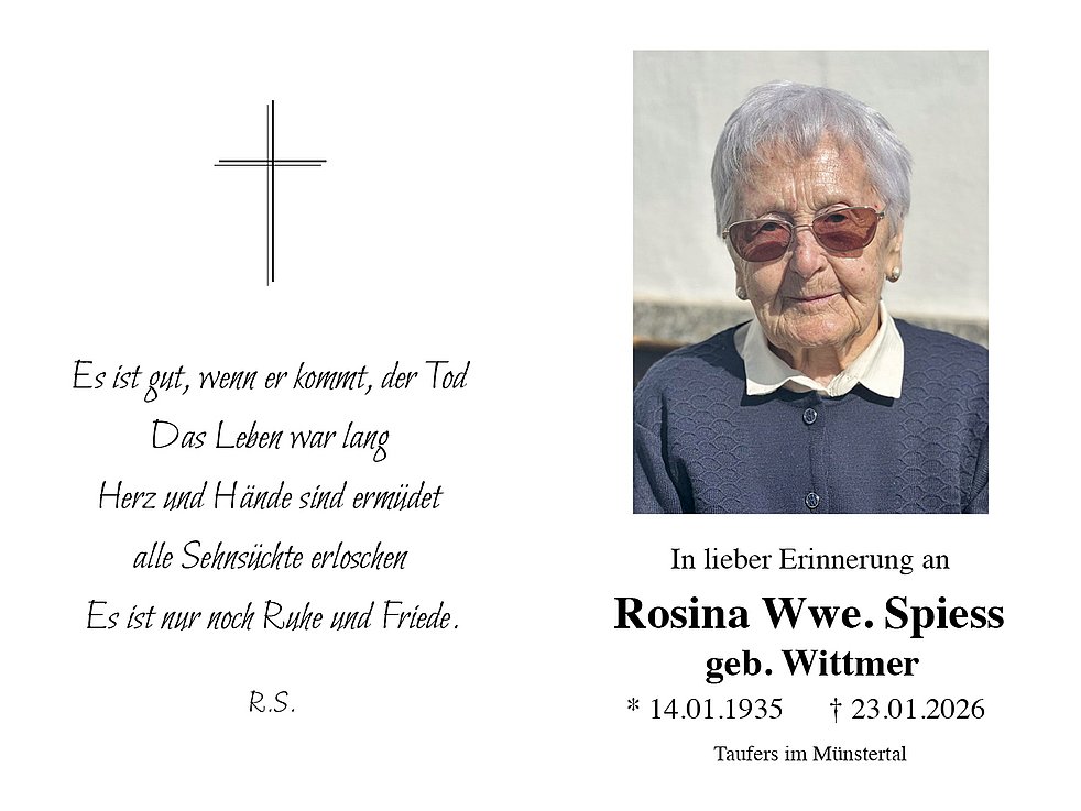 Rosina Wwe. Spiess geb. Wittmer