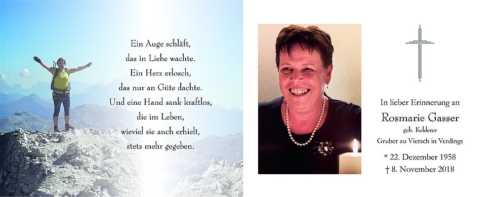 Die Erinnerungen an Rosmarie kann euch niemand nehmen,sie zaubern euch in schweren Zeiten ein Lächeln ins Gesicht, tief berührt möchten wir unser beileid aussprechen,Edeltraud mit Familie