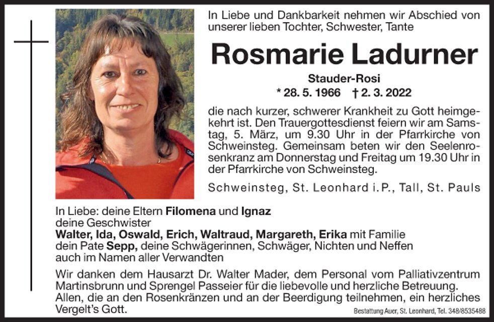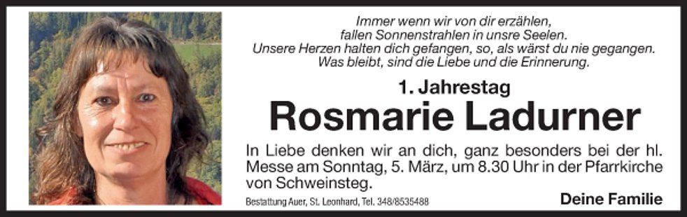 Den Trauergottesdienst feiern wir am Samstag, 5.März, um 9.30 Uhr in der Pfarrkirche von Schweinsteg.