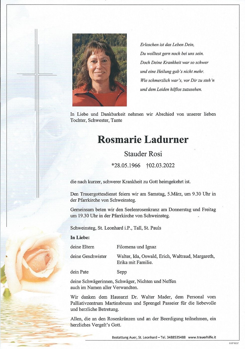 Wir danken dem Hausarzt Dr. Walter Mader, dem Personal vom Palliativzentrum Martinsbrunn und Sprengel Passeier für die liebevolle und herzliche Betretung.