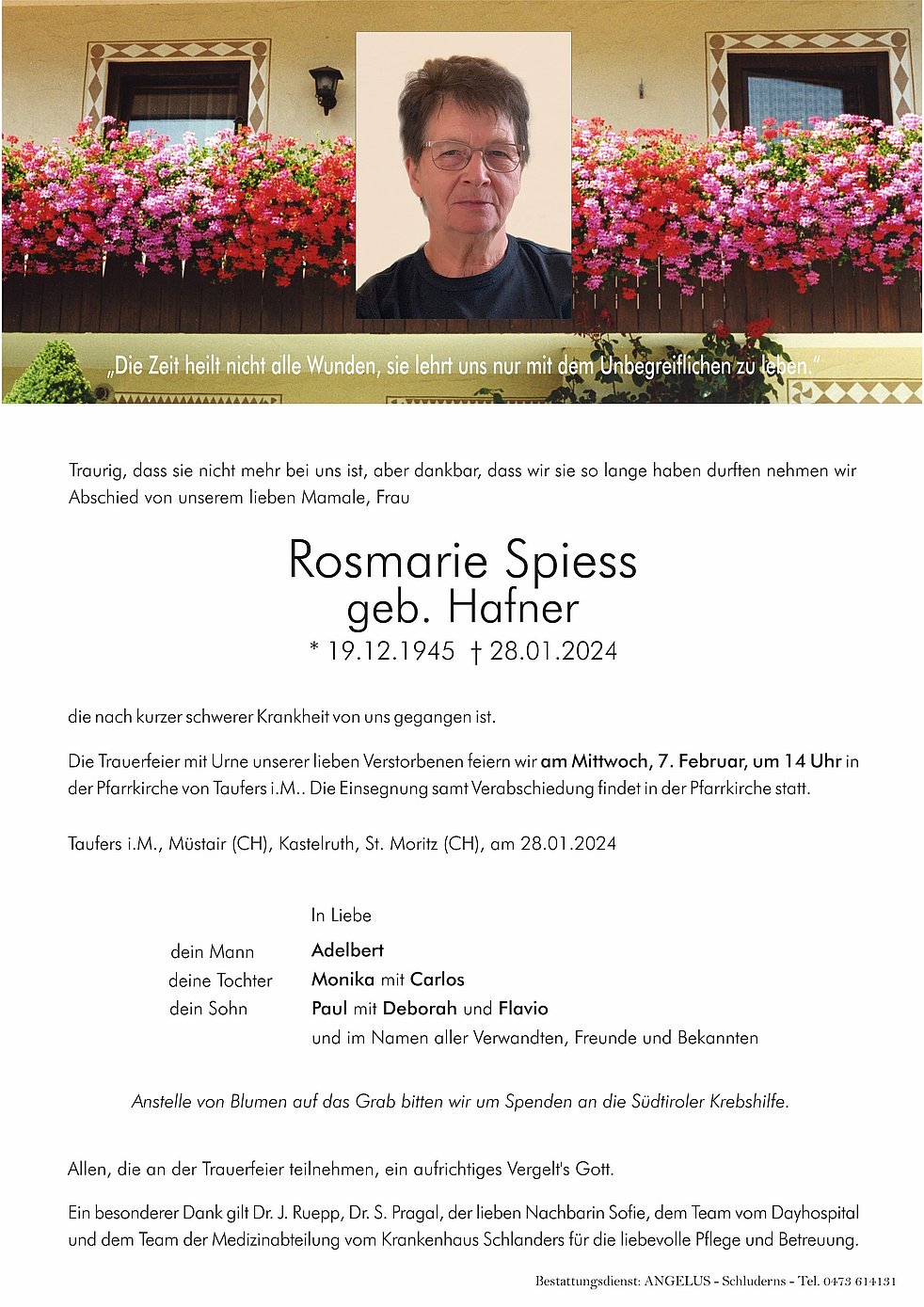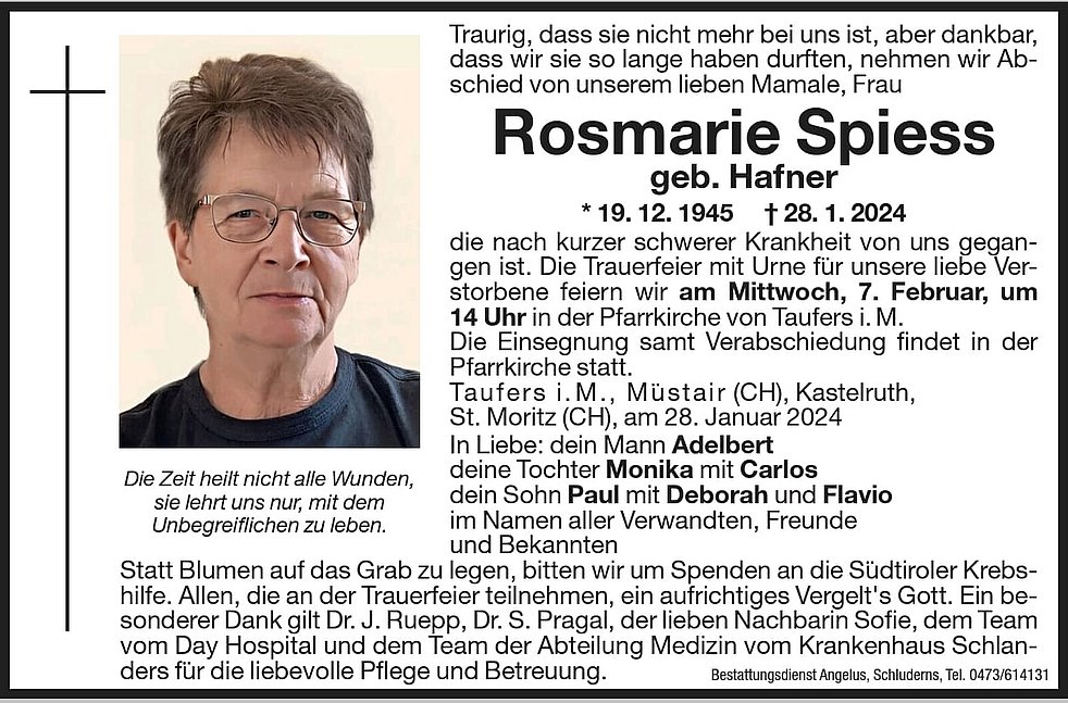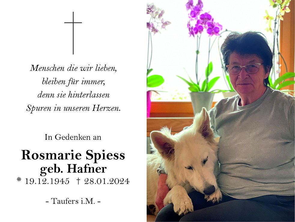 Wir denken weiterhin voller Liebe an unsere Rosmarie und wünschen Adalbert viel Kraft.