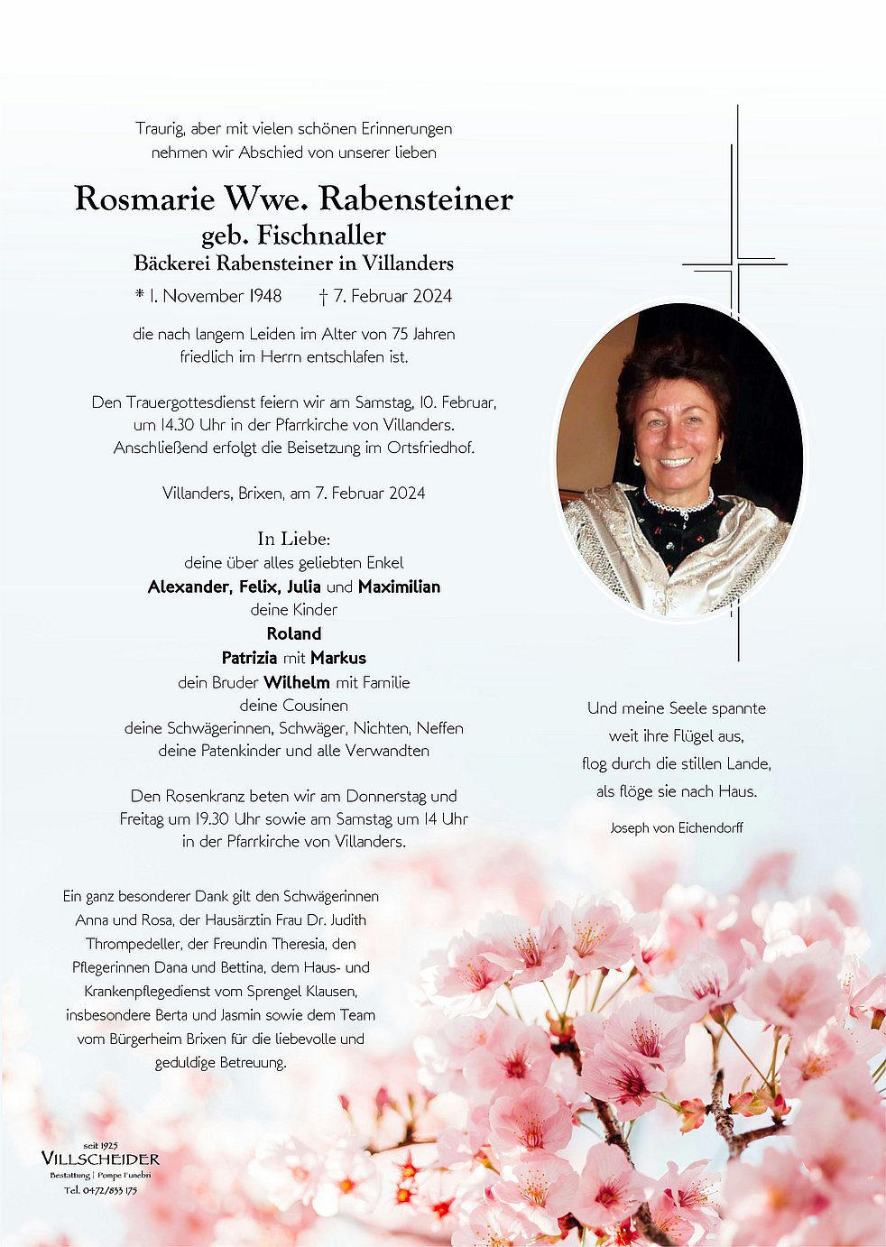 Aufrichtige Anteilnahme von Rabensteiner Rosa und Herbert Hölbling, Weingartner