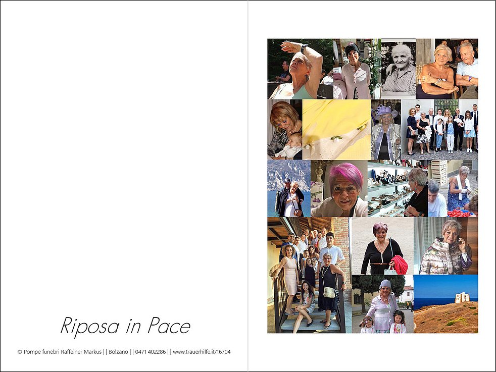 La famiglia ringrazia di cuore il personale medico e infermieristico dei reparti di ecografia e radiologia, neurologia, chirurgia vascolare ed ematologia dell’Ospedale di Bolzano per le cure amorevoli e per la loro professionalità e umanità.
