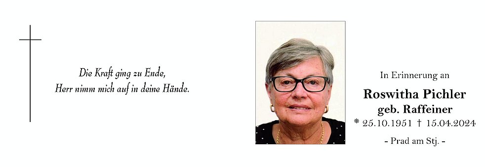 Wir möchten Euch unser tiefempfundenes Beileid ausdücken. Ganz still und leise ohne ein Wort, ging Roswitha von Euch fort. Es ist schwer, es zu verstehn. In
