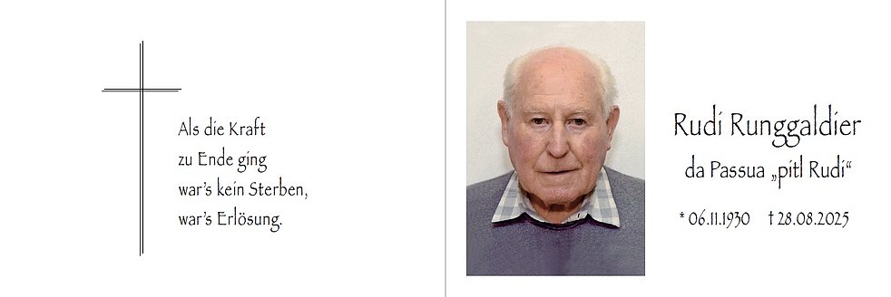 Den Trauergottesdienst mit anschließender Verabschiedung feiern wir am Samstag, dem 30. August, um 14.30 Uhr in der Pfarrkirche von St. Ulrich.