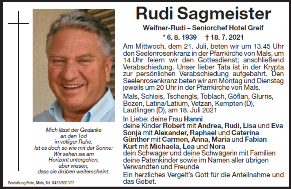 “ Weifner Rudi - Seniorchef Hotel Greif “