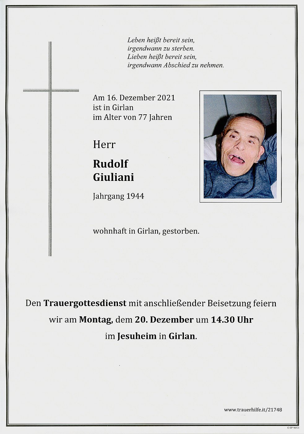 Begräbnisgottesdienst: 20.12. - 14:30 Uhr Kirche im Jesuheim