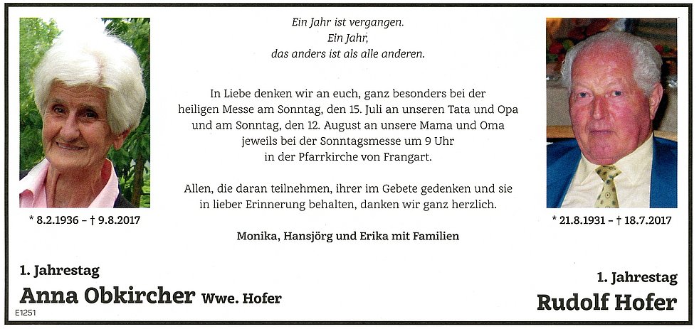 deine Frau Anna geb. Obkircher