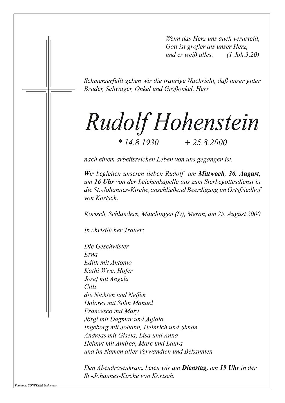 Hoi Rudl. In lieber Erinnerung an di a Lichtl zum 24.Johrtog. Danke für olles.