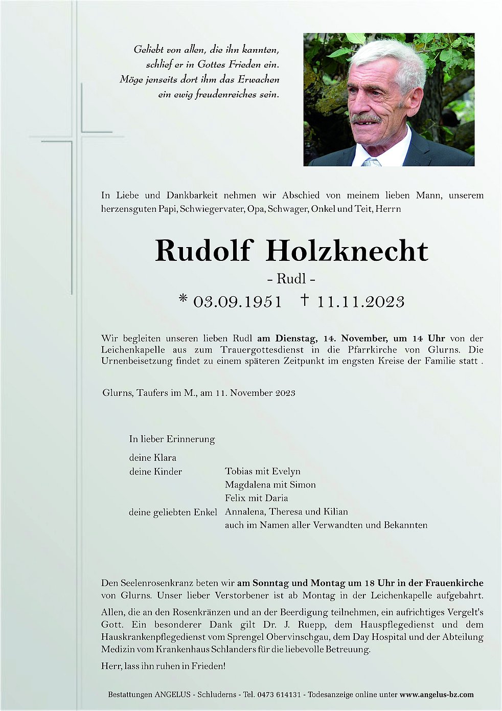 Und bis ihr euch wiederseht halte Gott dich fest in seiner Hand.