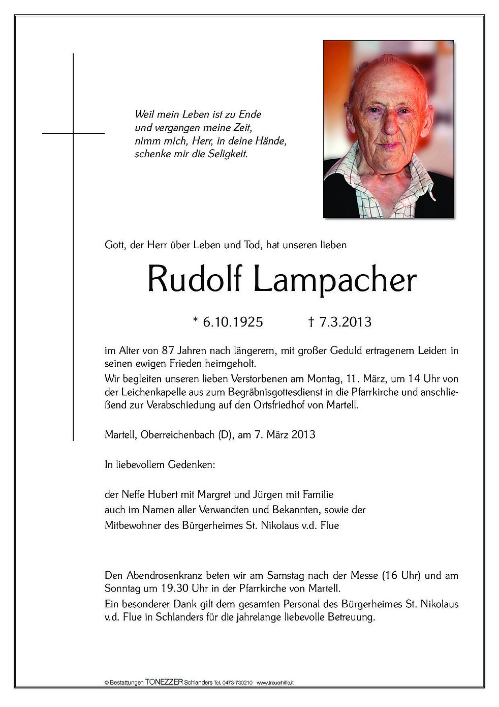 Wir begleiten unseren lieben Verstorbenen am Montag, 11. März, um 14 Uhr von der Leichenkapelle aus zum Begräbnisgottesdienst in die Pfarrkirche und anschließend zur Verabschiedung auf den Ortsfriedhof von Martell.