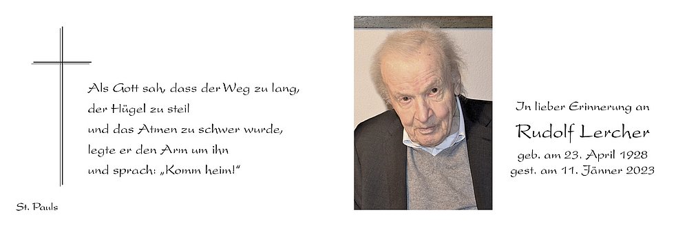 Den Abschiedsgottesdienst feiern wir am Samstag, 14. Jänner 2023 um 10.30 Uhr in der Pfarrkirche von St. Pauls. Anschließend begleiten wir unseren lieben Verstorbenen auf den Ortsfriedhof.
