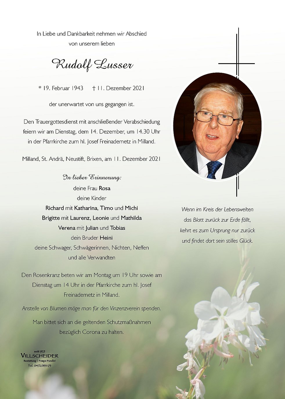 Liebe Rosl!Aufrichtige Anteilnahme und ehrliches Mitgefühl am Heimgang deines lieben Rudi entbietet dir, sowie deinen Kindern und allen deinen Angehörigen herzlichst Annemarie Kiebacher