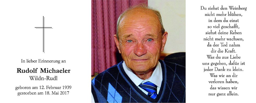 Getragen von deinem starken Lebenswillen hast du dein Schicksal mit großer Geduld angenommen. Gestärkt durch die Sakramente der Kirche ist mein lieber Mann, unser guter Tate, Schwiegervater und Opa,