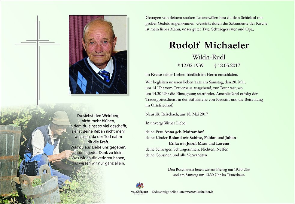 siehst deine Reben nicht mehr wachsen, da der Tod nahm