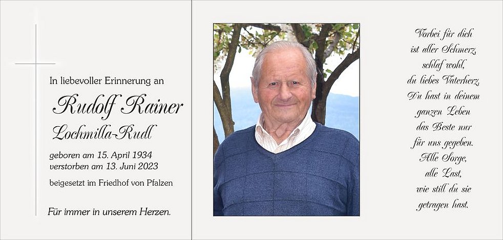 Unser lieber Tata ist ab Mittwochnachmittag in der neuen Friedhofskapelle von Pfalzen aufgebahrt.