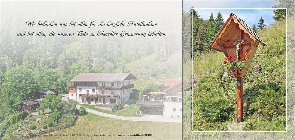 Den Trauergottesdienst feiern wir am Freitag, dem 16. Juni, um 14.30 Uhr in der Pfarrkirche von Pfalzen.