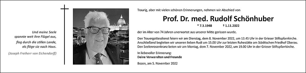 Den Trauergottesdienst feiern wir am Dienstag, dem 8. November 2022, um 13.45 Uhr in der Grieser Stiftspfarrkirche.