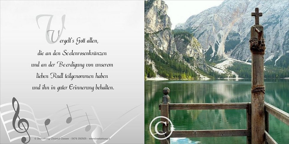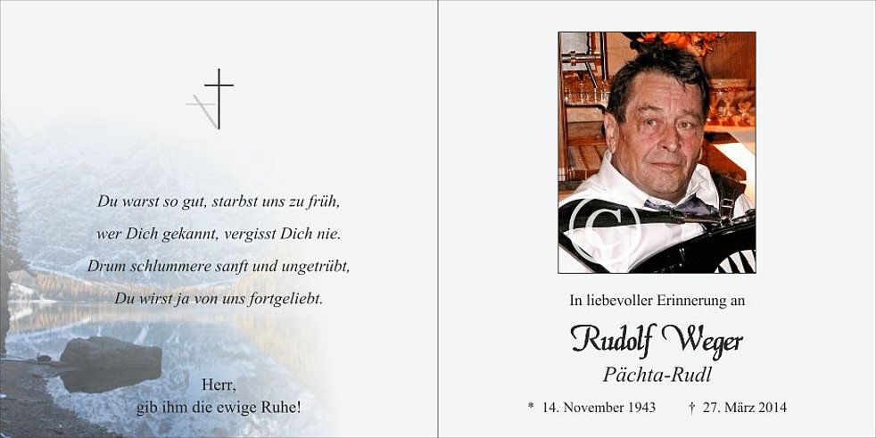 Vergelt‘s Gott allen, die an den Seelenrosenkränzen und an der Beerdigung von unserem lieben Rudl teilnehmen und ihn in guter Erinnerung behalten.