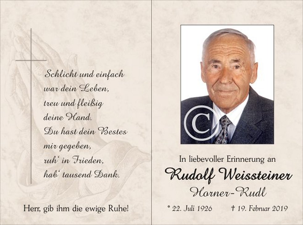 In tiefer Trauer gebe ich die Nachricht, dass mein lieber Mann
