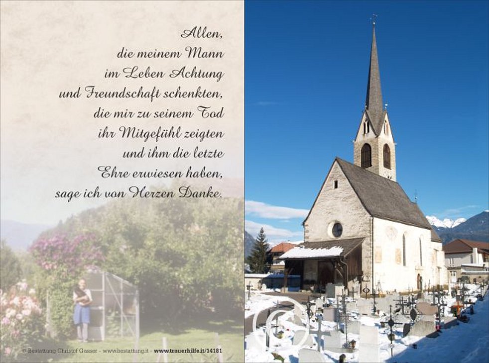 Ein besonderer Dank gilt Herrn Dr. Johann Hainz sowie dem gesamten Personal vom 3. Wohnbereich des Wohn- und Pflegeheimes Bruneck.