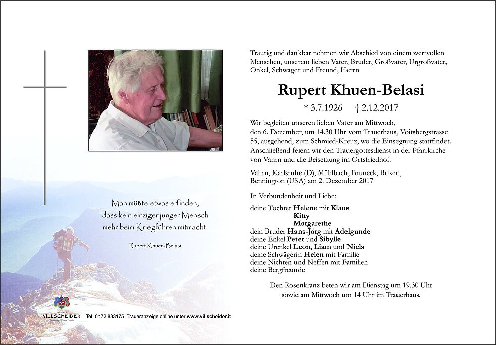 Anschließend feiern wir den Trauergottesdienst in der Pfarrkirche von Vahrn und die Beisetzung im Ortsfriedhof.
