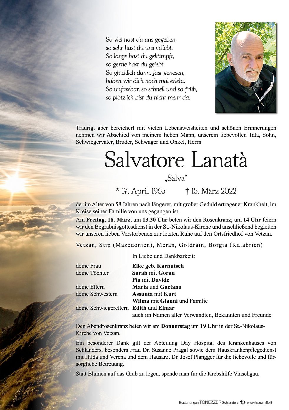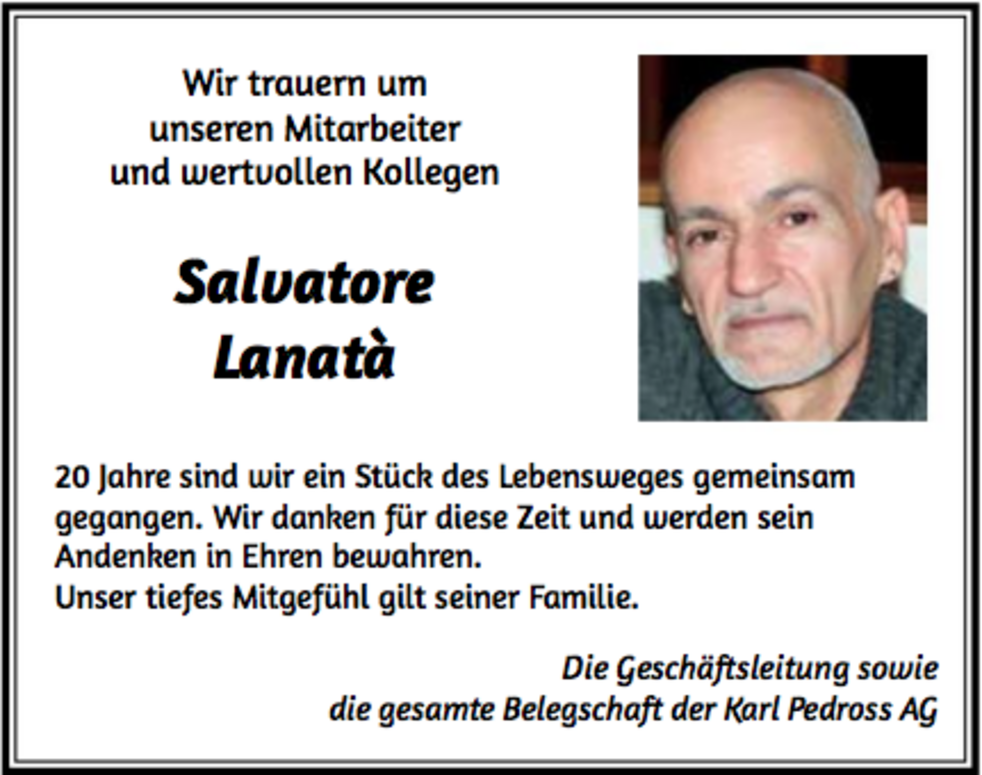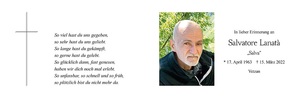 Am Freitag, 18. März, um 13.30 Uhr beten wir den Rosenkranz; um 14 Uhr feiern wir den Begräbnisgottesdienst in der St.-Nikolaus-Kirche und anschließend begleiten wir unseren lieben Verstorbenen zur letzten Ruhe auf den Ortsfriedhof von Vetzan.