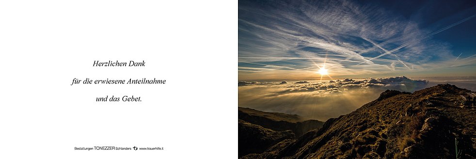 Ein besonderer Dank gilt der Abteilung Day Hospital des Krankenhauses von Schlanders, besonders Frau Dr. Susanne Pragal sowie dem Hauskrankenpflegedienst mit Hilda und Verena und dem Hausarzt Dr. Josef Plangger für die liebevolle und fürsorgliche Betreuung.