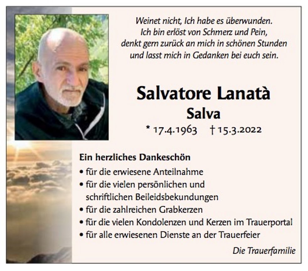 Traurig, aber bereichert mit vielen Lebensweisheiten und schönen Erinnerungen nehmen wir Abschied von meinem lieben Mann, unserem liebevollen Tata, Sohn, Schwiegervater, Bruder, Schwager und Onkel, Herrn