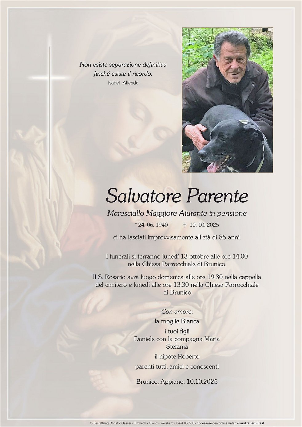 I funerali si terranno lunedí 13 ottobre alle ore 14.00
