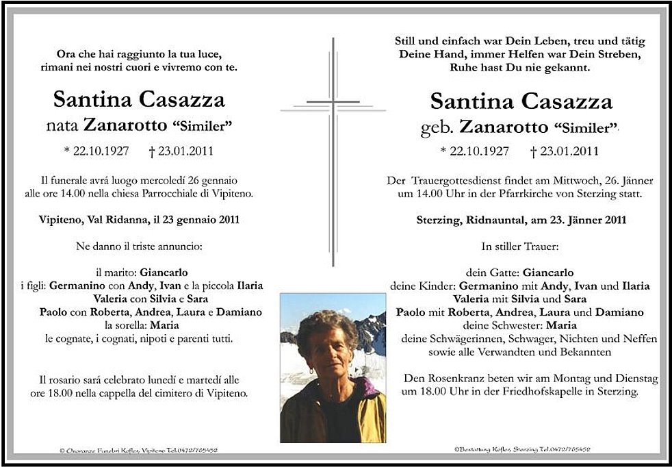 Il funerale avrá luogo mercoledí 26 gennaio alle ore 14.00