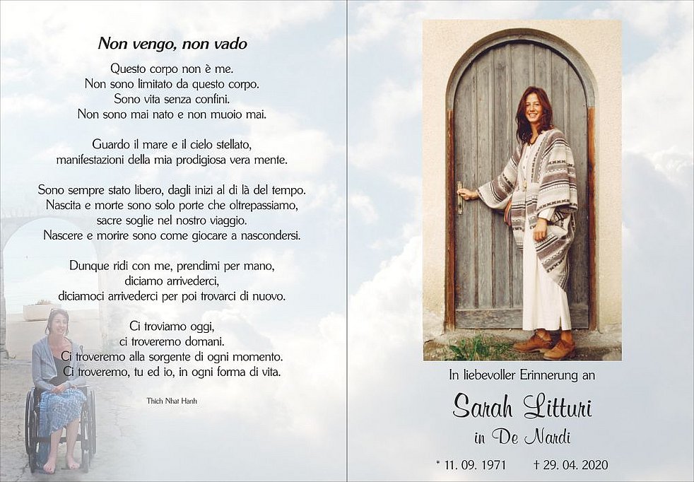Liebe Sarah, dein Leiden hat nun ein Ende. Du hast mit viel Zuversicht und Geduld gekämpft und gehofft.Wir hätten dir gerne noch Zeit mit deinen Lieben gegönnt. Doch deine Kraft ging zu Ende, Ruhe in Frieden. ❤️ Unvergessen bleibt dein Lächeln und deine positive Einstellung zum Leben. Traurigen Herzen drücken wir deiner ganzen Familie unser aufrichtiges Beileid aus.
