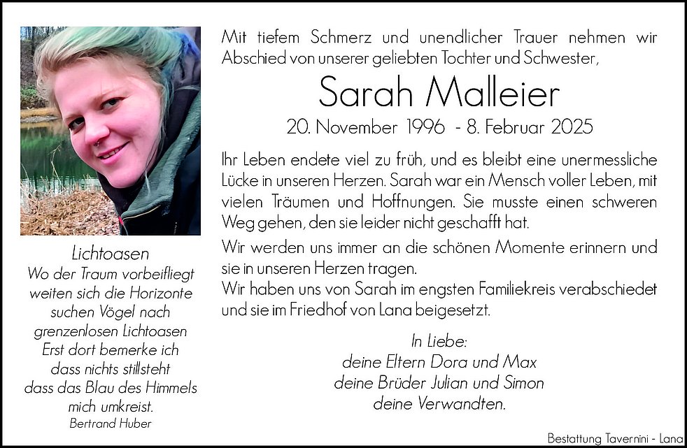 Unser tiefempfundenes Mitgefühl aufrichtiger Anteilnahme anläßlich des Heimganges von Sarah.