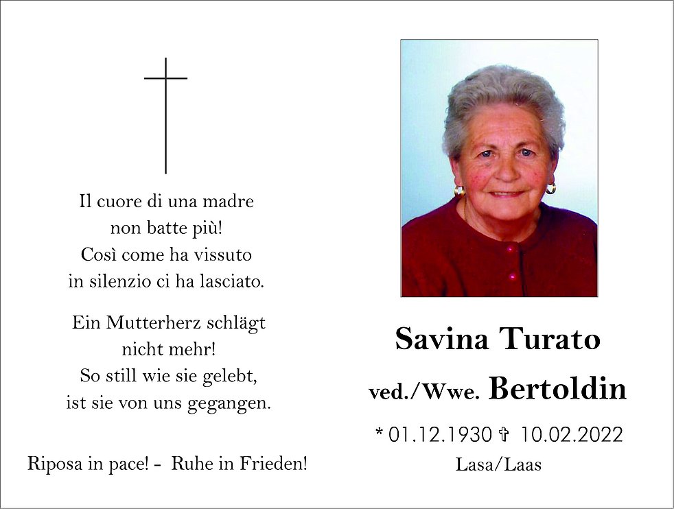 Sabato 19 febbraio alle ore 13.40, preghiamo il rosario; alle ore 14 verrá celebrata la messa di suffragio nella chiesa parrocchiale di Lasa;
