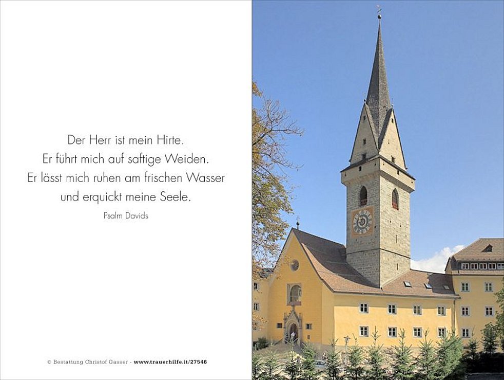 Den Beerdigungsgottesdienst feiern wir am Dienstag, dem 2. Jänner, um 14 Uhr in der Pfarrkirche von Bruneck. Anschließend erfolgt die Beisetzung im städtischen Friedhof.