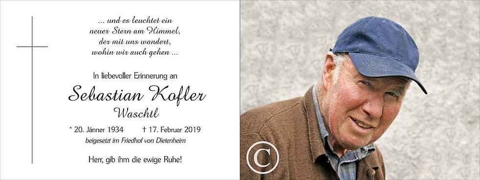 Mit dem Gefühl tiefen Dankes für all das, was er für uns war und gab, nehmen wir in Liebe Abschied von meinem lieben Mann, unserem geliebten Tata, Opa und Bruder, Herrn