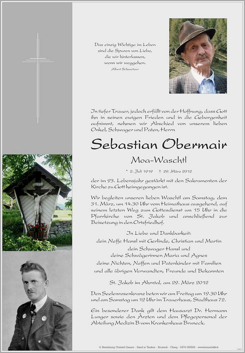 31. März, um 14.30 Uhr vom Heimathaus ausgehend, auf seinem letzten Weg zum Gottesdienst um 15 Uhr in die Pfarrkirche von St. Jakob und anschließend zur Beisetzung in den Ortsfriedhof.