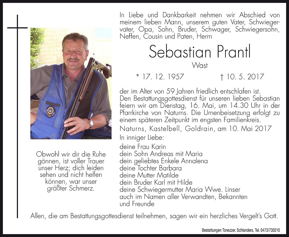 Den Bestattungsgottesdienst für unseren lieben Sebastian feiern wir am Dienstag, 16. Mai,