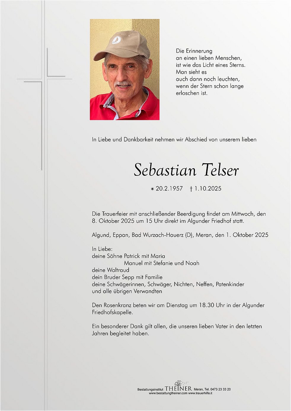 Die Trauerfeier mit anschließender Beerdigung findet am Mittwoch, den 8. Oktober 2025 um 15 Uhr direkt im Algunder Friedhof statt.