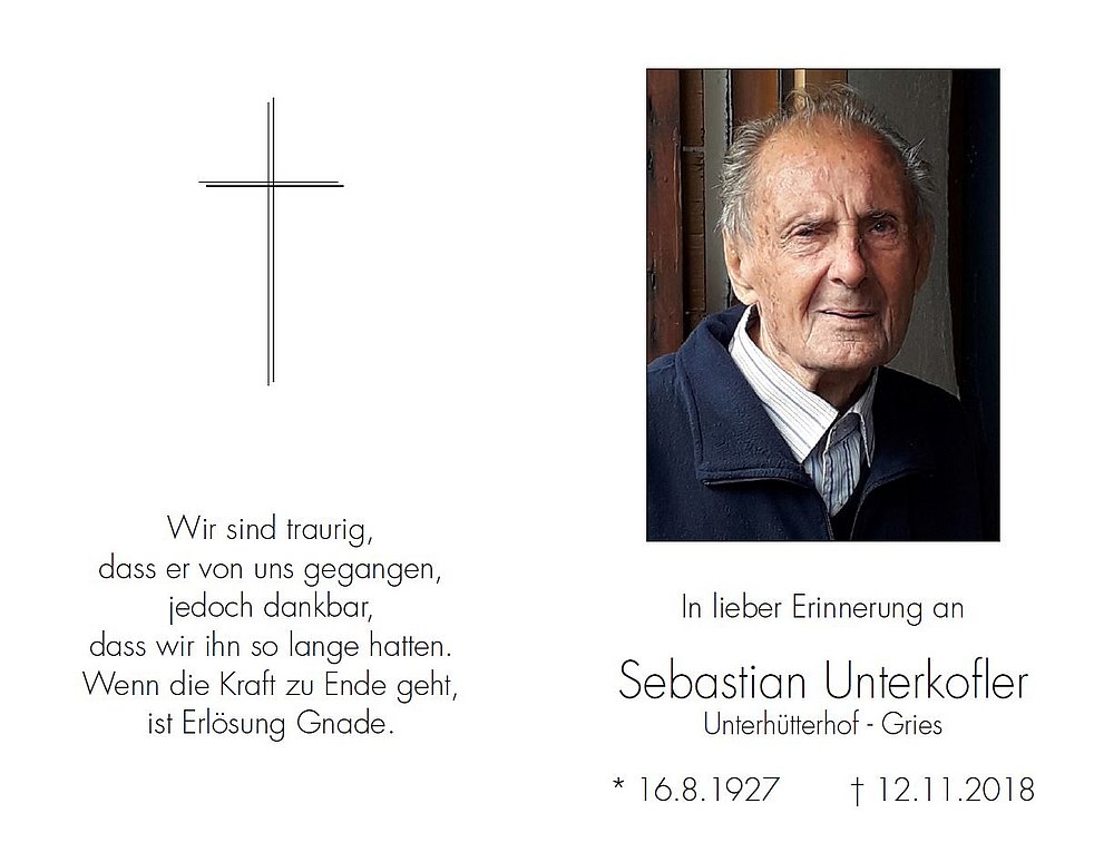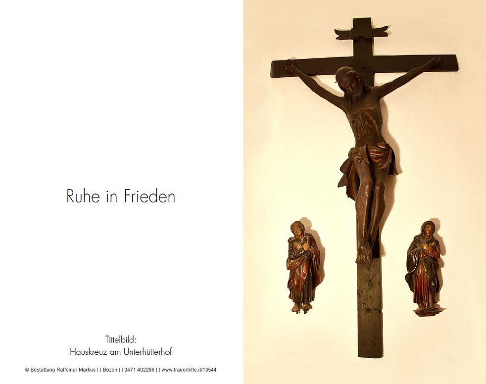 Den Trauergottesdienst feiern wir am Mittwoch, dem 14. November, um 14.30 Uhr in der Grieser Stiftspfarrkirche; anschlieβend um 15.45 Uhr begleiten wir unseren lieben Wastl zur letzten Ruhe auf den städtischen Friedhof von Bozen-Oberau, ausgehend von der Friedhofskapelle.