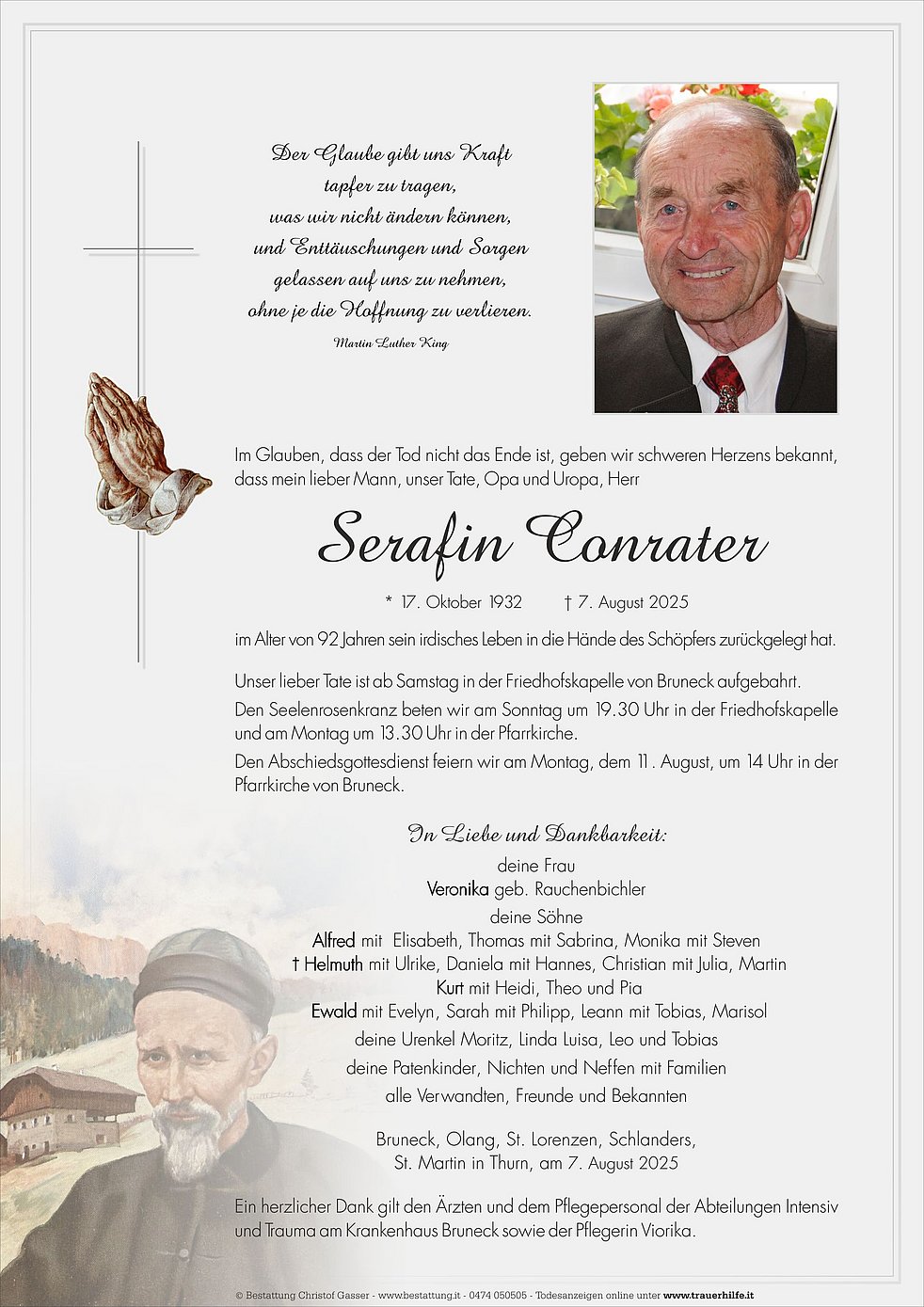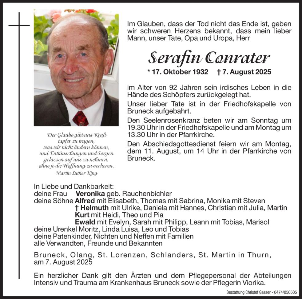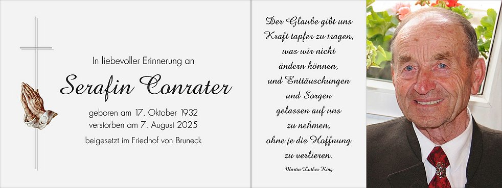 Unser lieber Tate ist ab Samstag in der Friedhofskapelle von Bruneck aufgebahrt.