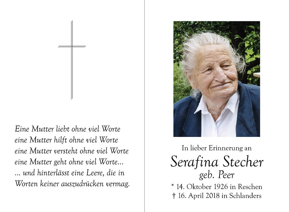 * 14.10.1926 in Reschen † 16.4.2018 in Schlanders