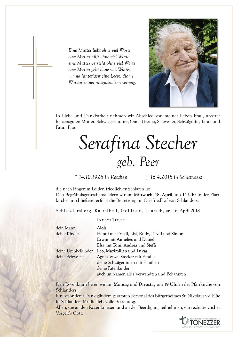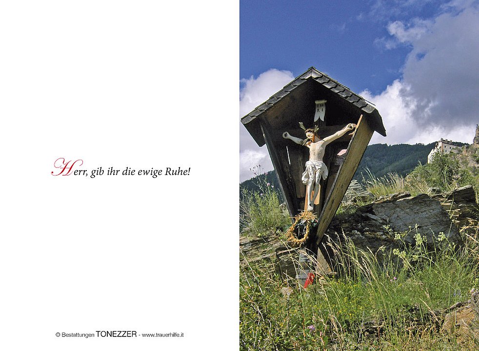 Den Begräbnisgottesdienst feiern wir am Mittwoch, 18. April, um 14 Uhr in der Pfarrkirche; anschließend erfolgt die Beisetzung im Ortsfriedhof von Schlanders.
