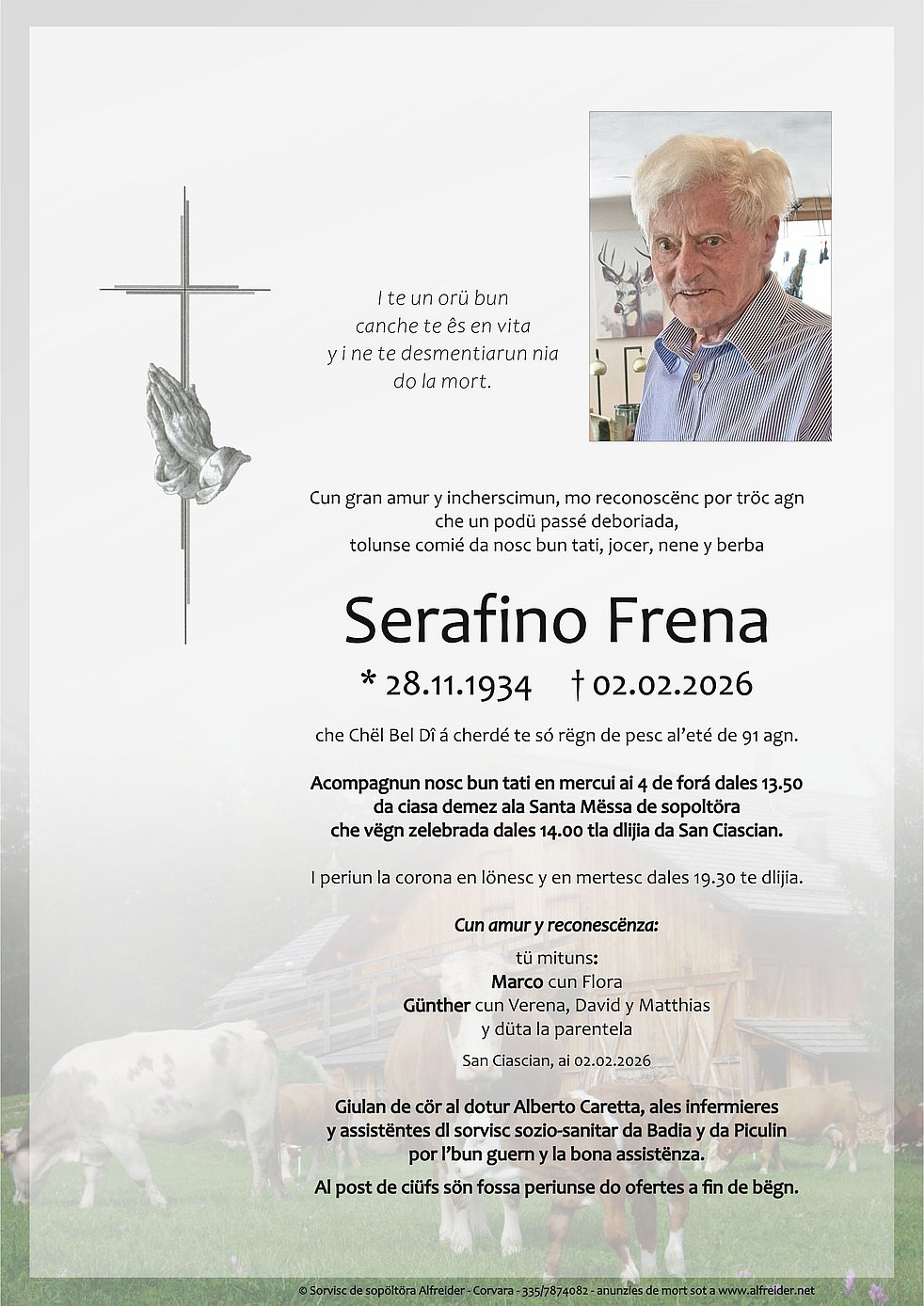 Serafino palsa tla pêsc 🙏 ai familiars nostes condolianzes🙏