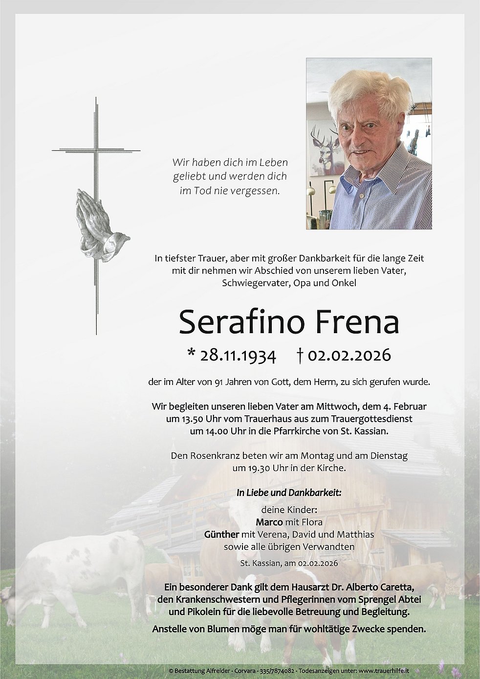 Verabschiedung: 04.02. - 14:00 Uhr Pfarrkirche St. Kassian